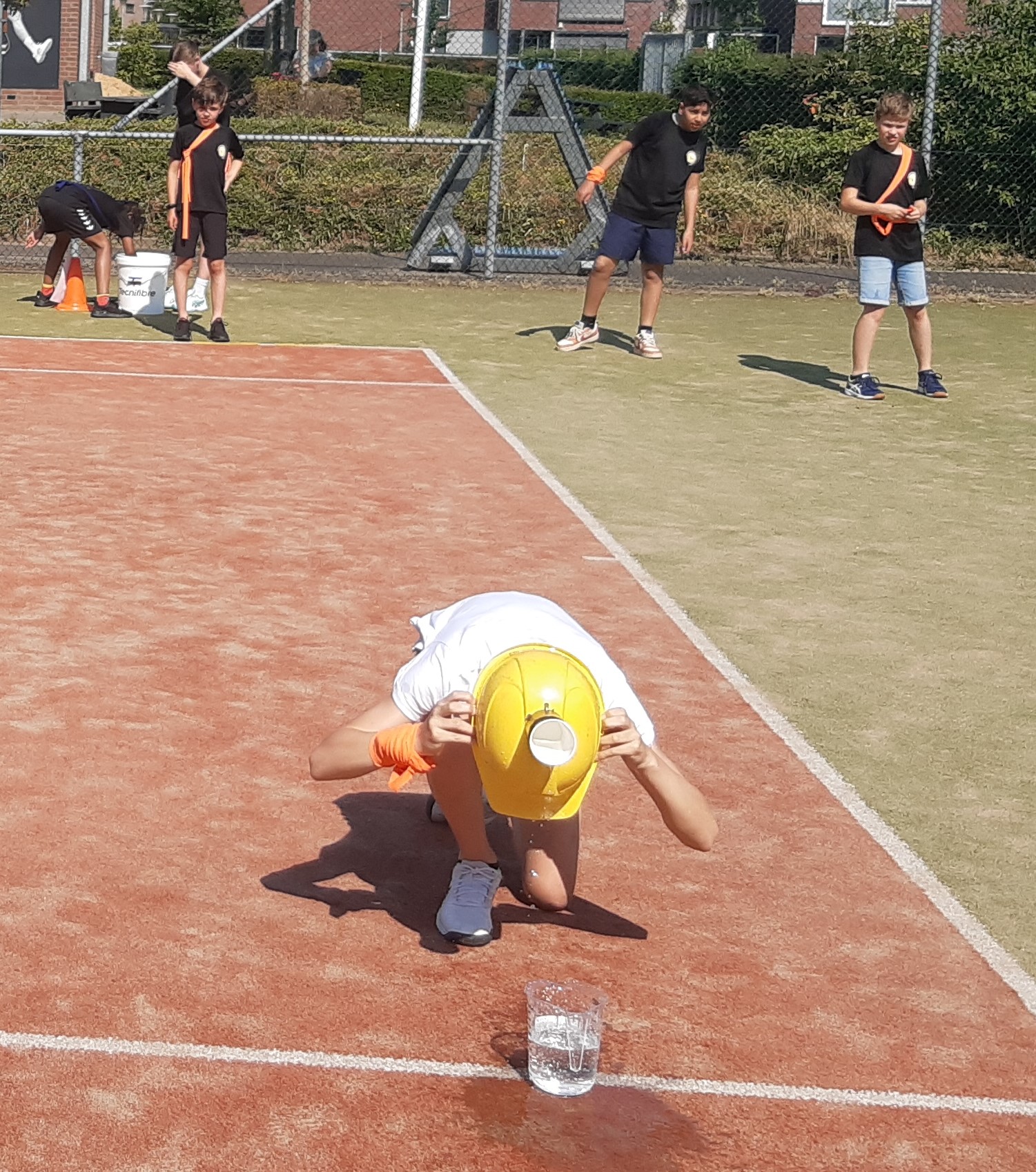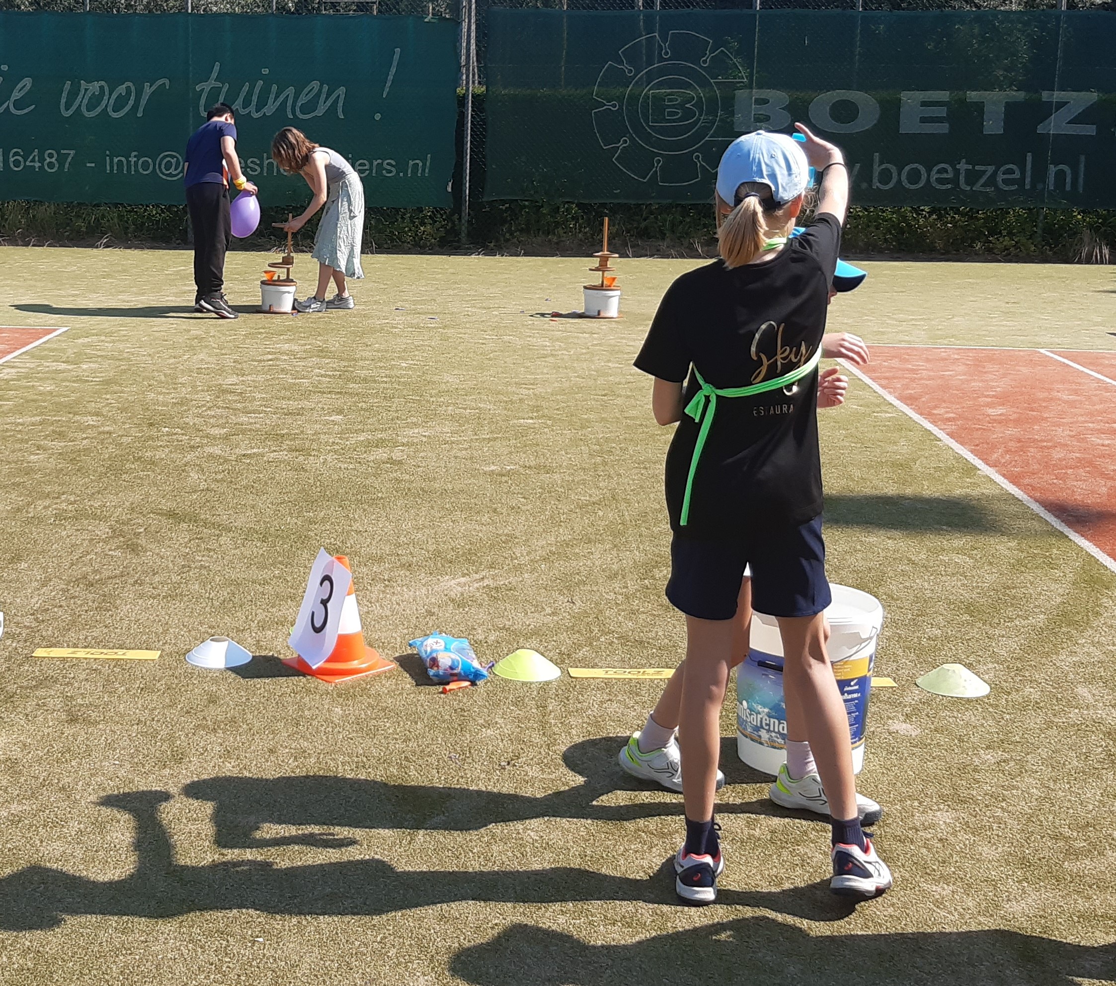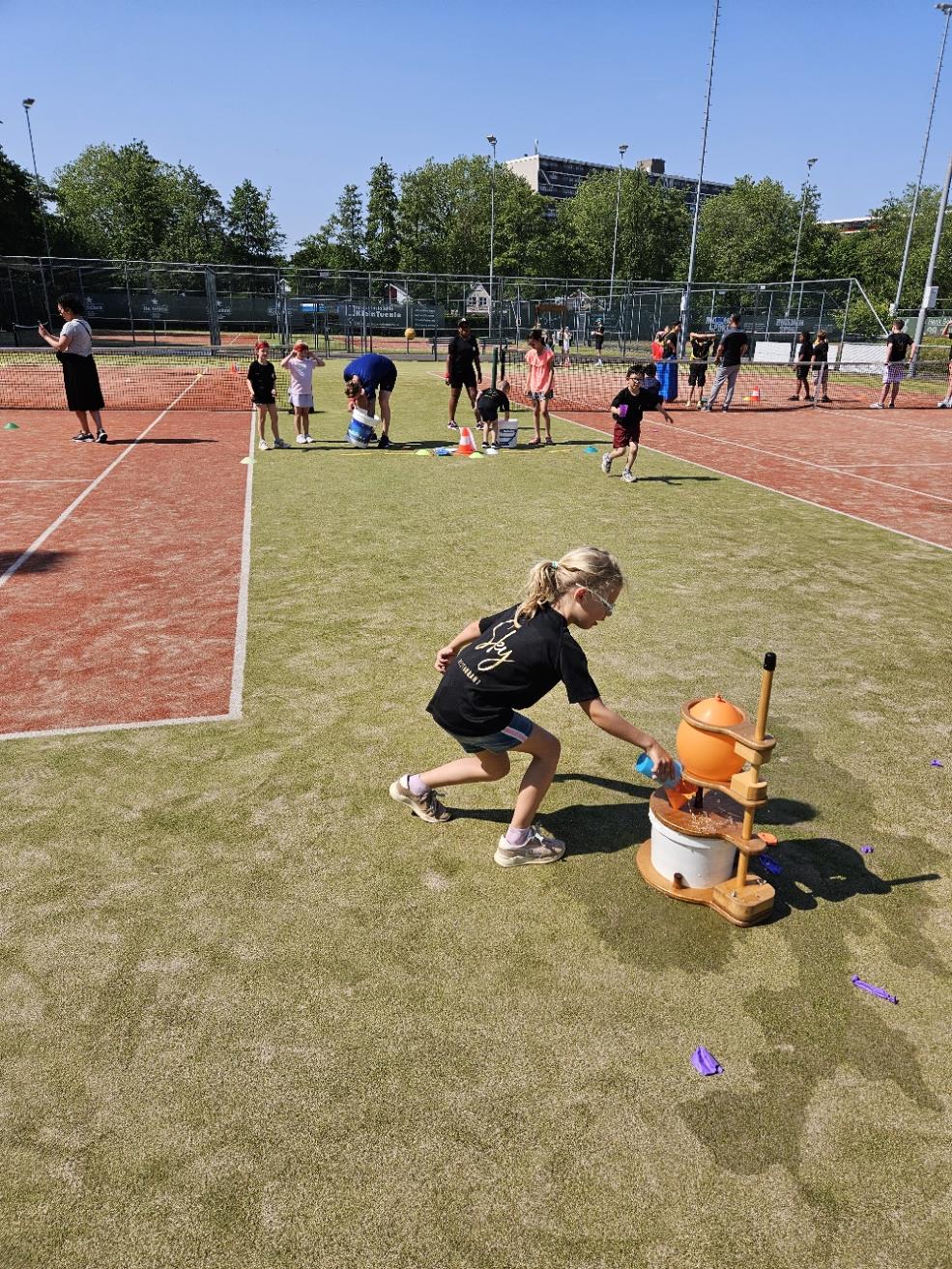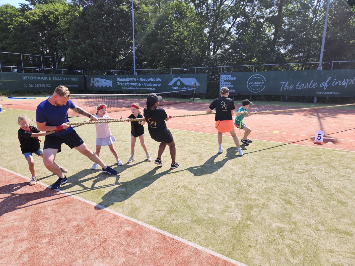 De afsluiting van de competitie in combinatie met een zeskamp! 30 enthousiaste kinderen in de leeftijd van 5 t/m 14 jaar streden tegen elkaar in verschillende onderdelen. Zo was er een onderdeel waarbij de reactie werd getest, er werden heel wat stenen gegooid in de sjoelbak, de kinderen testen hun kracht met touwtrekken en natuurlijk waren er een aantal waterspellen. Want wat was het warm! Dat het uiteindelijk eindigde in een groot watergevecht was dan ook een heerlijke afkoeling en afsluiting van de zeskamp.