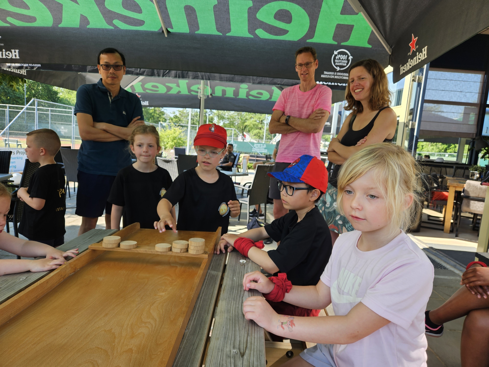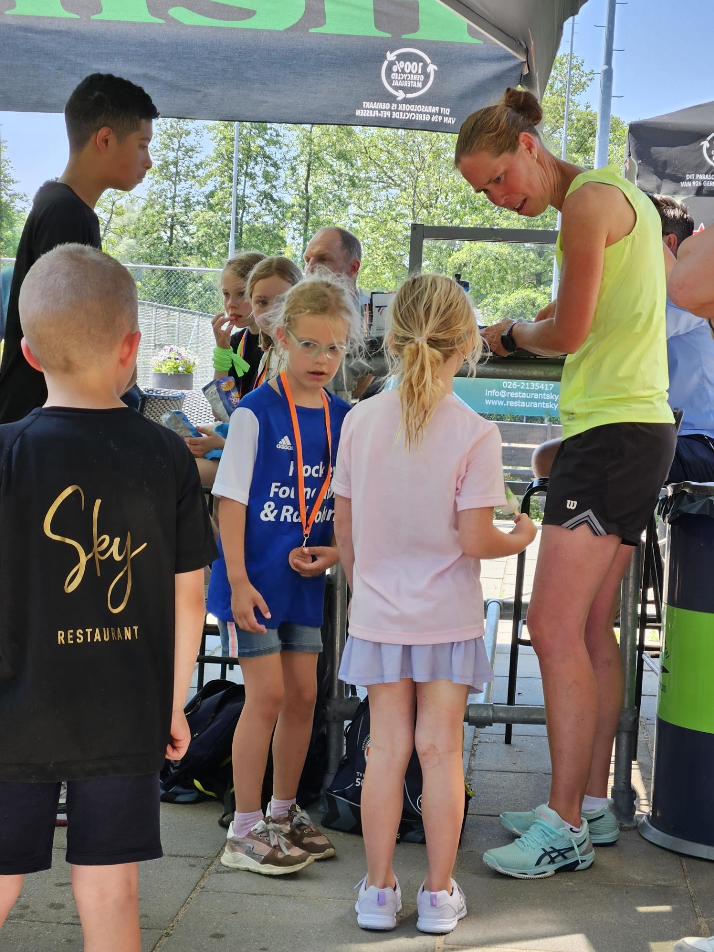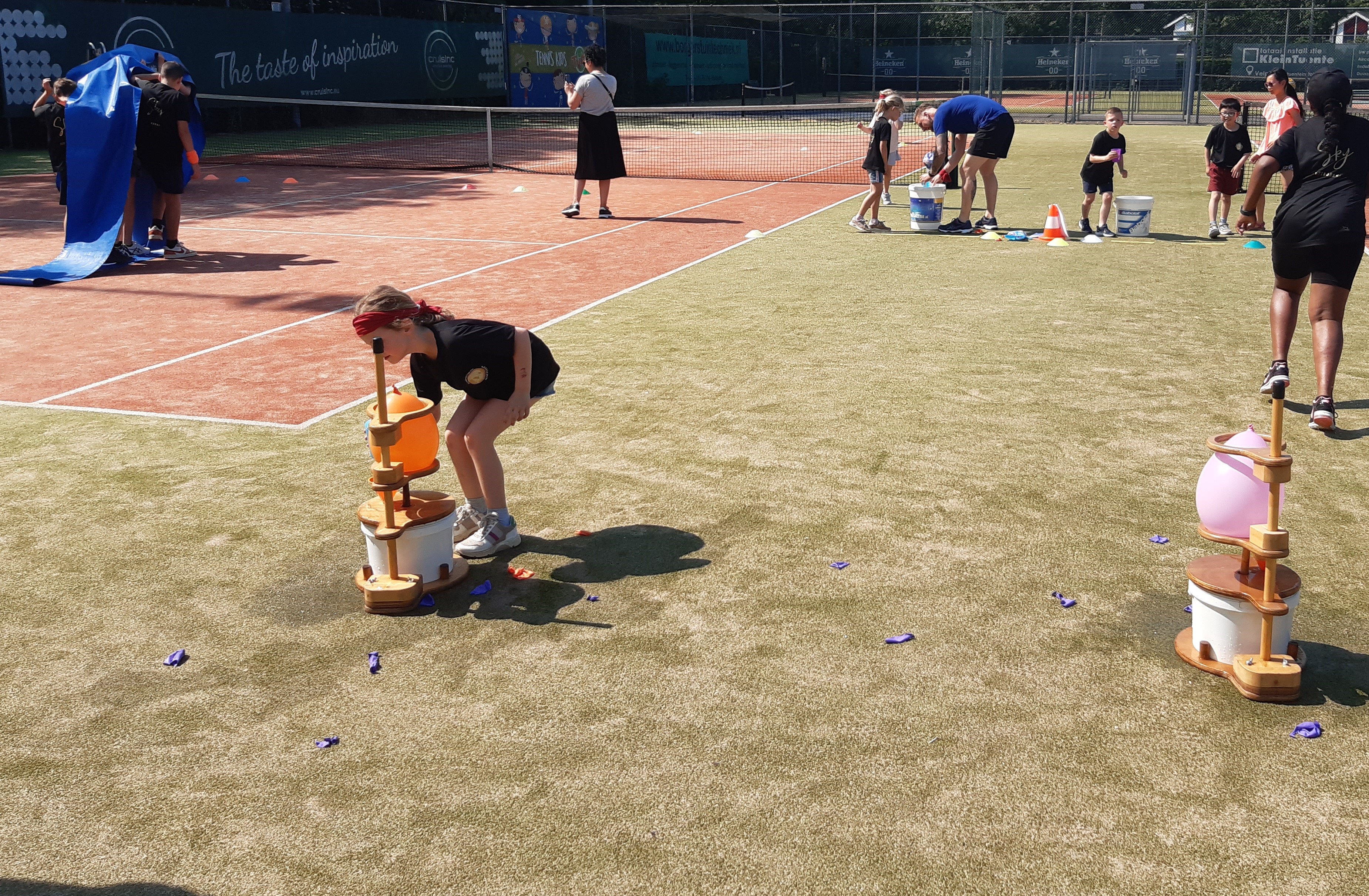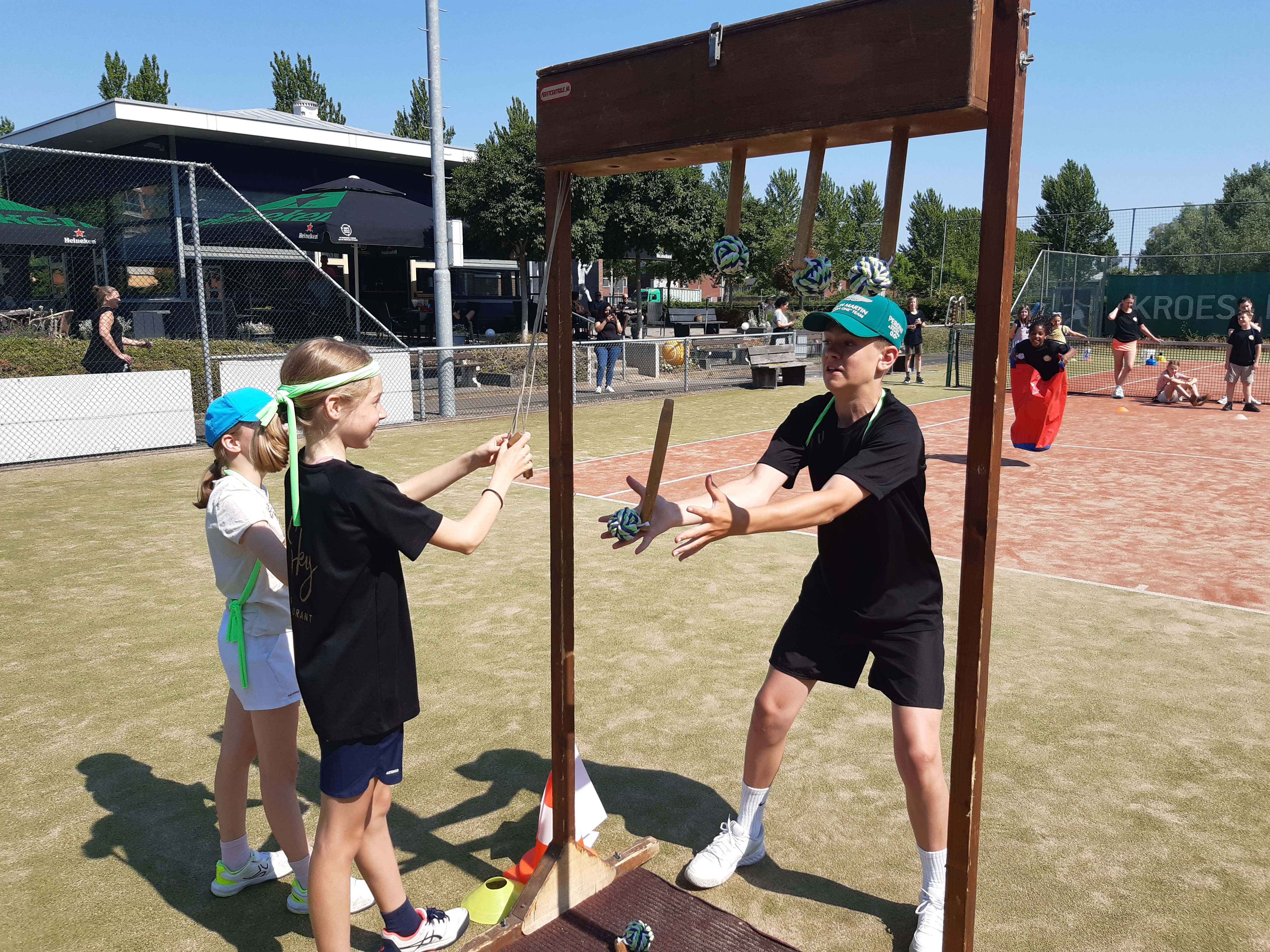 De afsluiting van de competitie in combinatie met een zeskamp! 30 enthousiaste kinderen in de leeftijd van 5 t/m 14 jaar streden tegen elkaar in verschillende onderdelen. Zo was er een onderdeel waarbij de reactie werd getest, er werden heel wat stenen gegooid in de sjoelbak, de kinderen testen hun kracht met touwtrekken en natuurlijk waren er een aantal waterspellen. Want wat was het warm! Dat het uiteindelijk eindigde in een groot watergevecht was dan ook een heerlijke afkoeling en afsluiting van de zeskamp.