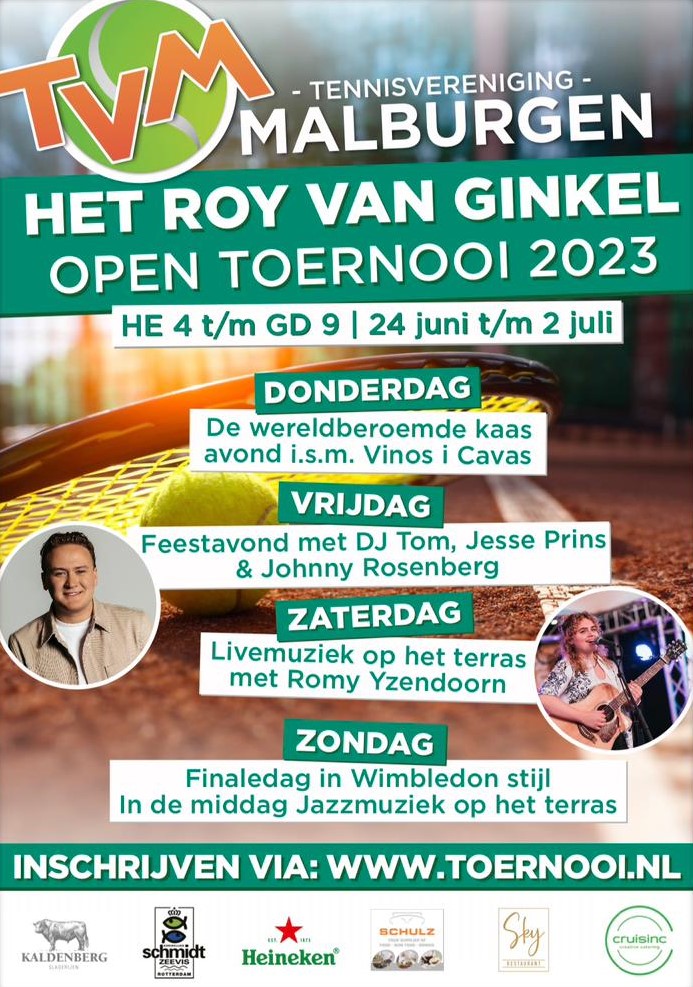 We gaan er weer een supergezellige week van maken vol tennisplezier. En uiteraard hebben we op vrijdag 30 juni een spetterende feestavond met fantastische live artiesten (voor ieder wat wils!).